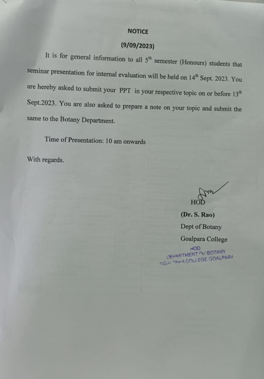 The Goalpara College Botany Department was founded in 1966 by Professor Kula Bhusan Das as its founding Head of the Department (HoD). Subsequently, the Department started offering a Major Course in 1990. Since then, students have excelled in both Major and General courses from the department. Currently, the Department has five permanent faculty members and two bearers to ensure holistic and quality education of the students.